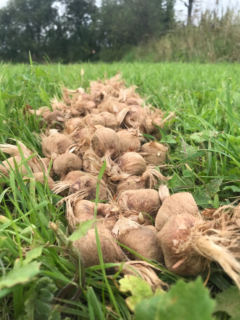 Les buttes sont réalisées pour plusieurs raisons. Tout d’abord, la préservation des bulbes d’un excédent d’humidité, ensuite cela nous permet de bien organiser l’espace, et enfin lors de cueillette les quelques centimètres gagnés en hauteur sont précieux.